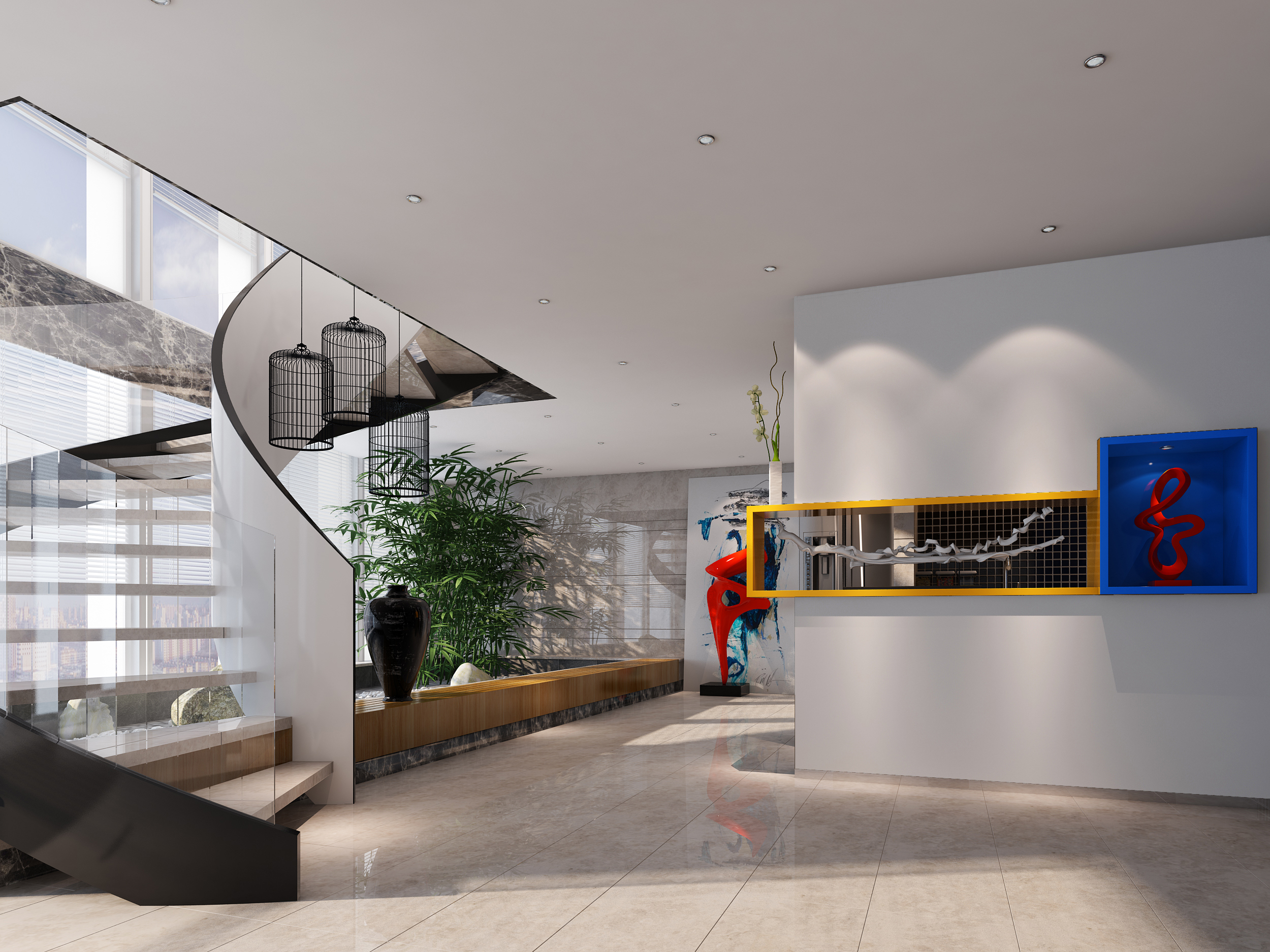 大堂的设计理念也标志着其他环境和空间,设计师运用干净优雅的线条和大玻璃