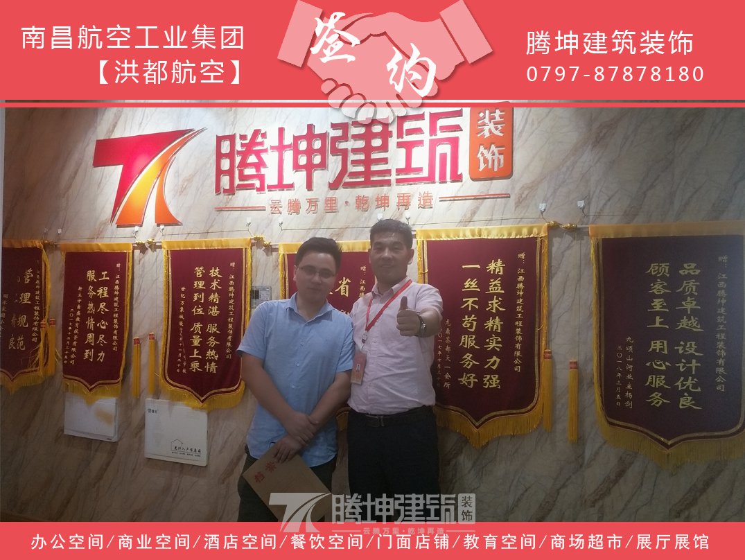 关键词: 办公室写字楼装修商场店铺装修酒店宾馆装修餐饮茶楼装修家居别墅装修会所网咖装修 、 南昌知名航空工业集团-洪都航空签约腾坤装饰、